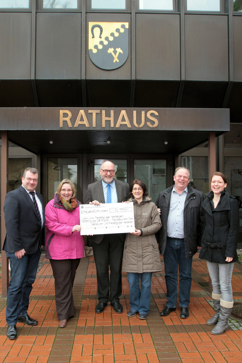 Die diesjährige zweite Hälfte der Weihnachtsspende wurde durch Herrn Rakel und Herrn Uphoff vom Planungsbüro Hahm im Beisein des Bürgermeisters Herrn Elixmann und der Mitarbeiterin der Gemeindeverwaltung Frau Mons an die Lern- und Freizeitgruppe der AWO Nachmittagsbetreuung in Hasbergen übergeben.